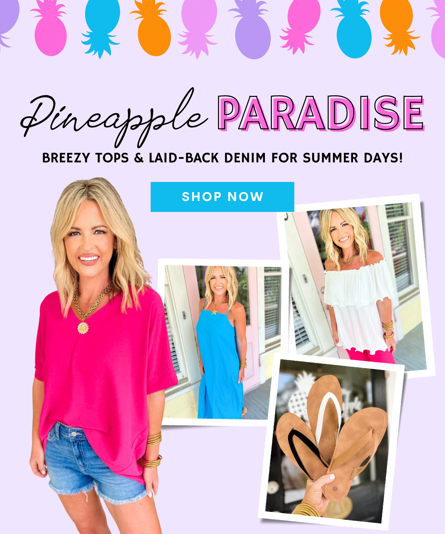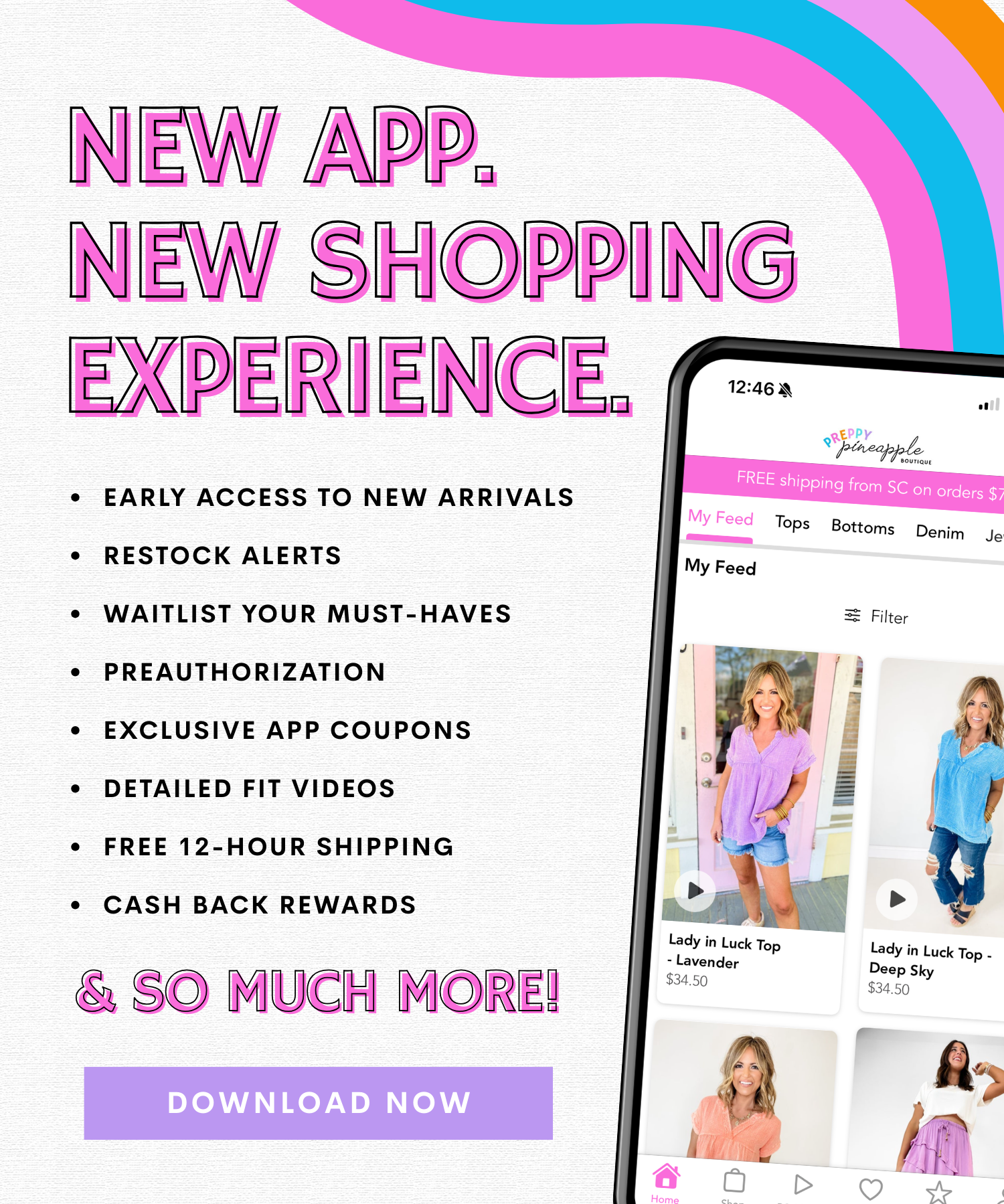 We are an award winning boutique located on Main Street in the heart of downtown Lancaster, SC. We are all about classic and timeless styles with a modern twist, but don’t mind our unapologetic love for seersucker, gingham, the color pink, and all things preppy! We launch new arrivals almost every day and truly believe there’s something here for everyone! Whether you’re looking for comfortable everyday basics or something to make a fashion statement, Preppy Pineapple has you covered!