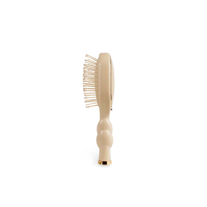 The Mini Detangling Hair Brush for Medium Hair in Tan is made for quick, gentle brushing anywhere. It glides through knots with less pulling and features a built-in mirror and storage, making it the perfect mini hair brush with mirror for on-the-go touch-ups.