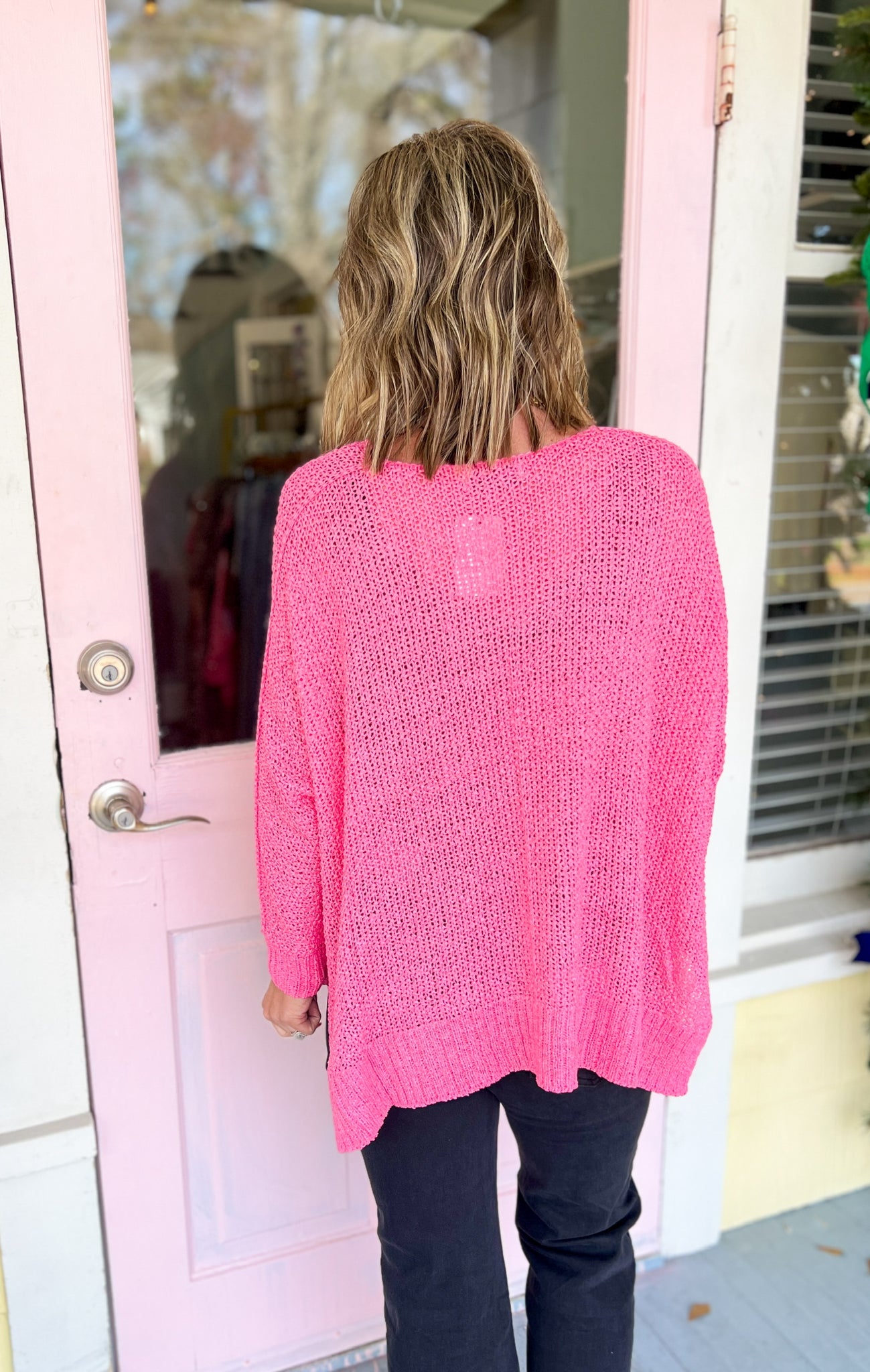 Why Not Dolman Sleeve Sweater Top - Fuchsia