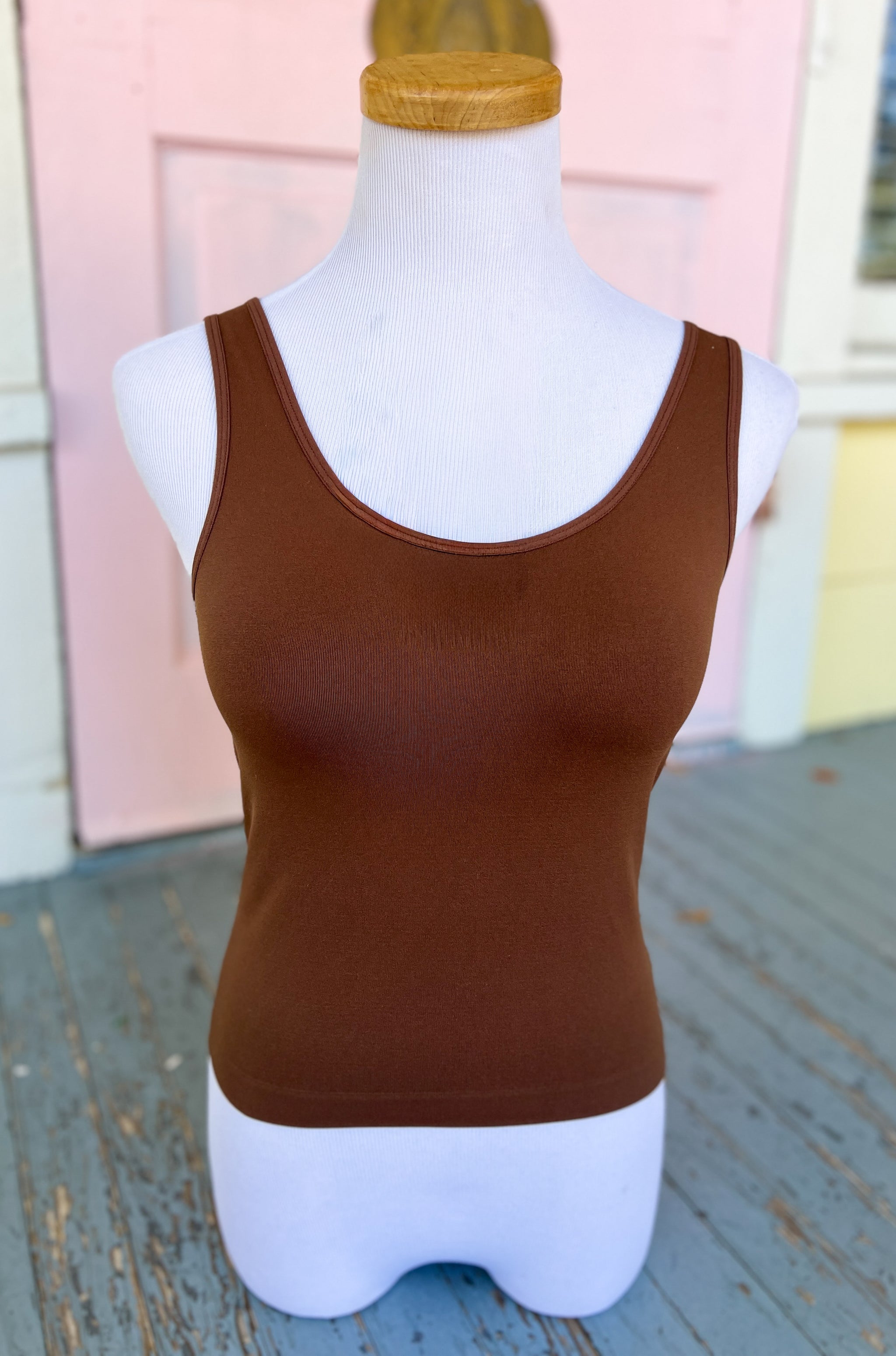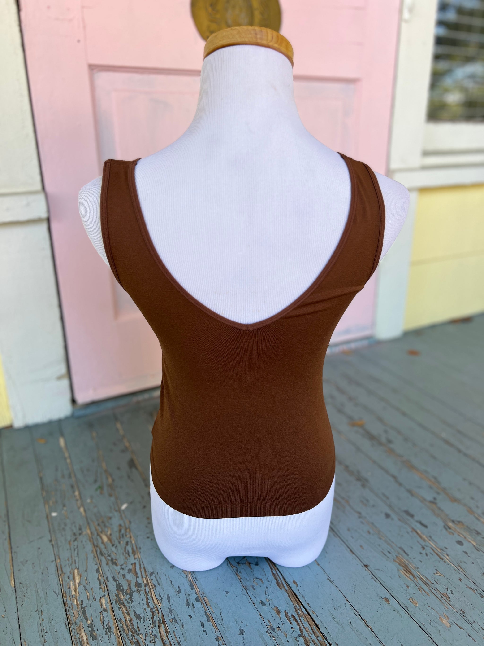 Short-Reversible V Neckline Seamless Tank - Coffee
