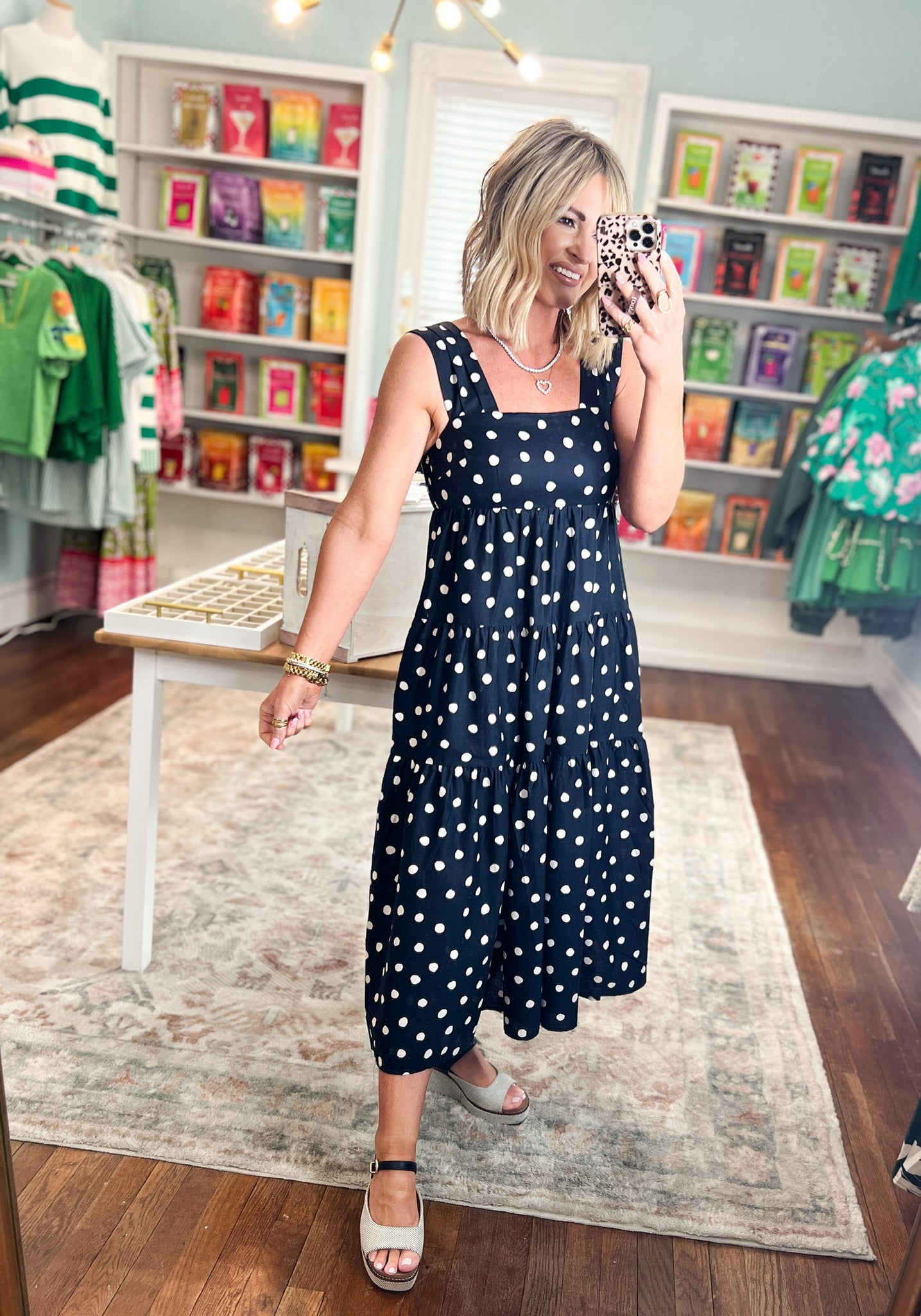 Meet your new go-to dress. This tiered midi features a cheerful polka dot print and a flattering high empire waist that feels as good as it looks. Pleated wide straps distribute weight comfortably across your shoulders, while the smocked back panel provides gentle support and shape. Practical side pockets mean you can leave the bag behind, and the fully lined, lightweight woven construction keeps you comfortable all day long. Non-sheer and thoughtfully designed, it's the kind of piece that works harder than it looks.