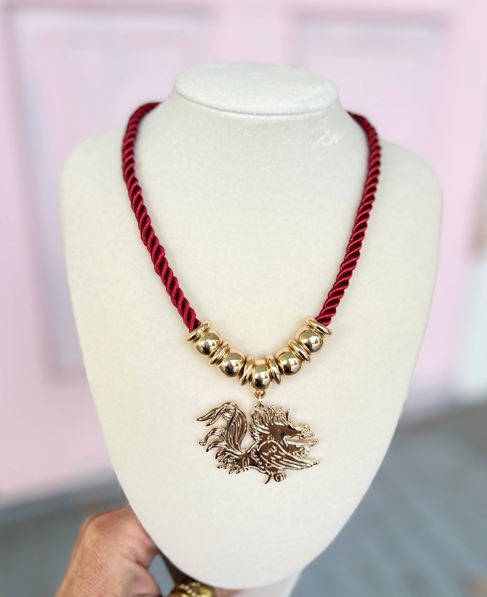 GAMEDAY Football Theme Cord Necklace - Gamecock/Burgundy