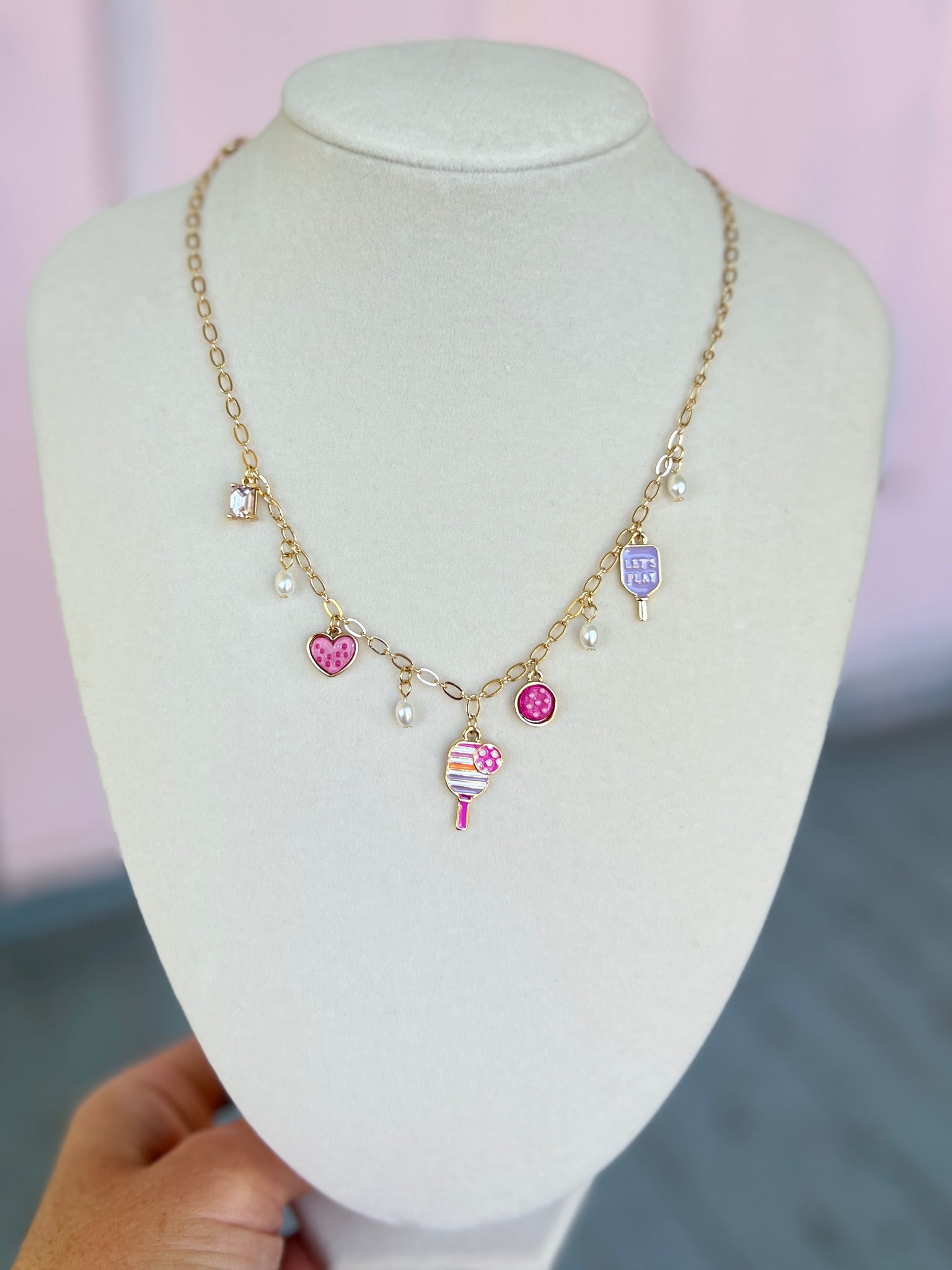 Pickleball Charm and Pearl Necklace