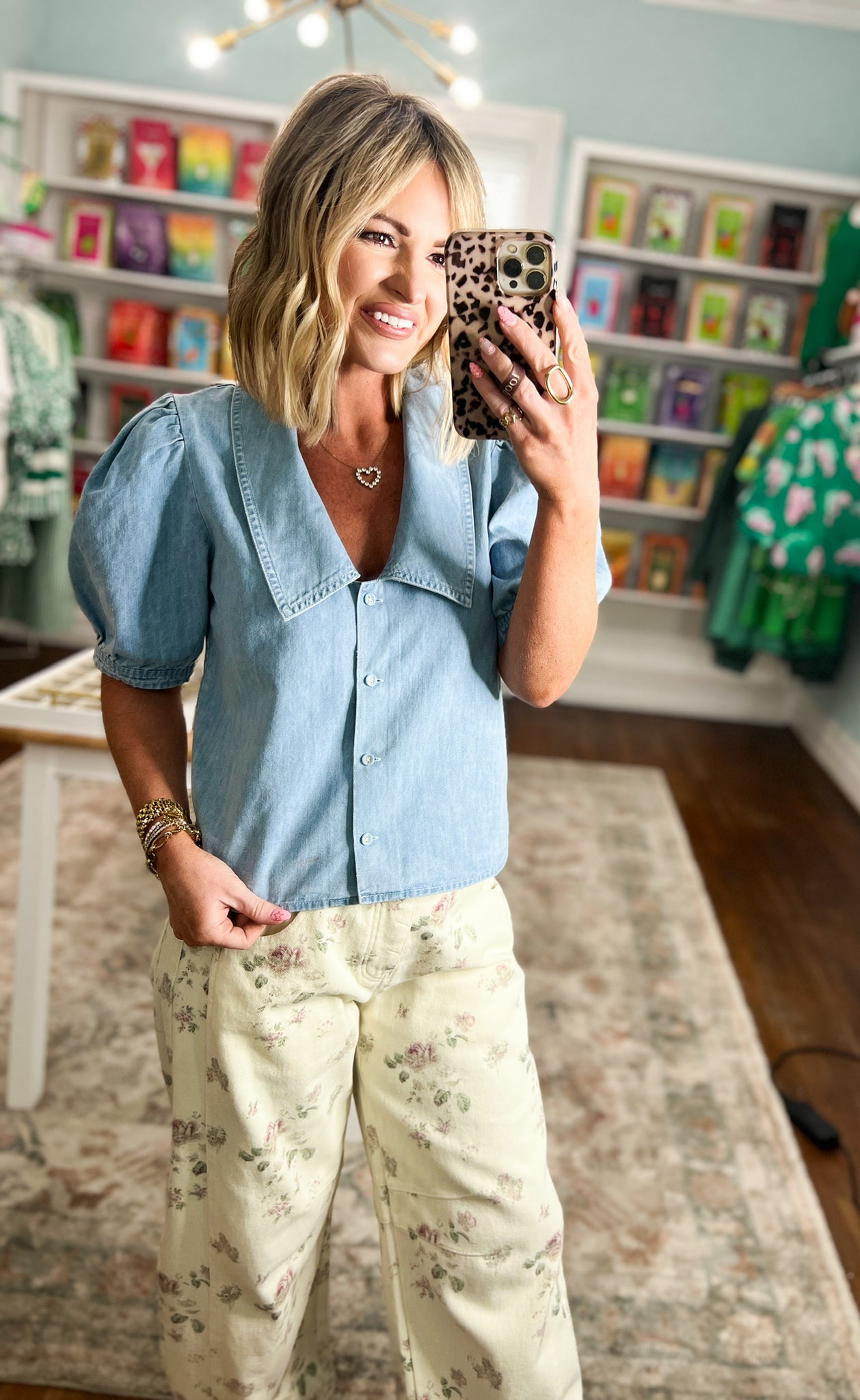 Effortless charm meets timeless style with this denim top. Featuring a classic button-front closure, voluminous puff sleeves, and a striking statement collar, it's designed to elevate any casual look. The lightweight fabric keeps you comfortable all day, while the thoughtful details add personality to your wardrobe. Perfect for layering or wearing solo.