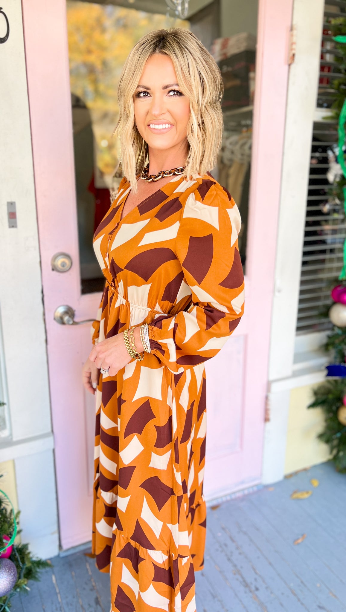 Dare to stand out in our Mirror Image Midi Dress! Featuring an abstract print, V-neck, and half button front, this dress is perfect for the risk-taker. The skirt is lined and includes side pockets, making it both stylish and functional. Be bold and make a statement with this daring dress!