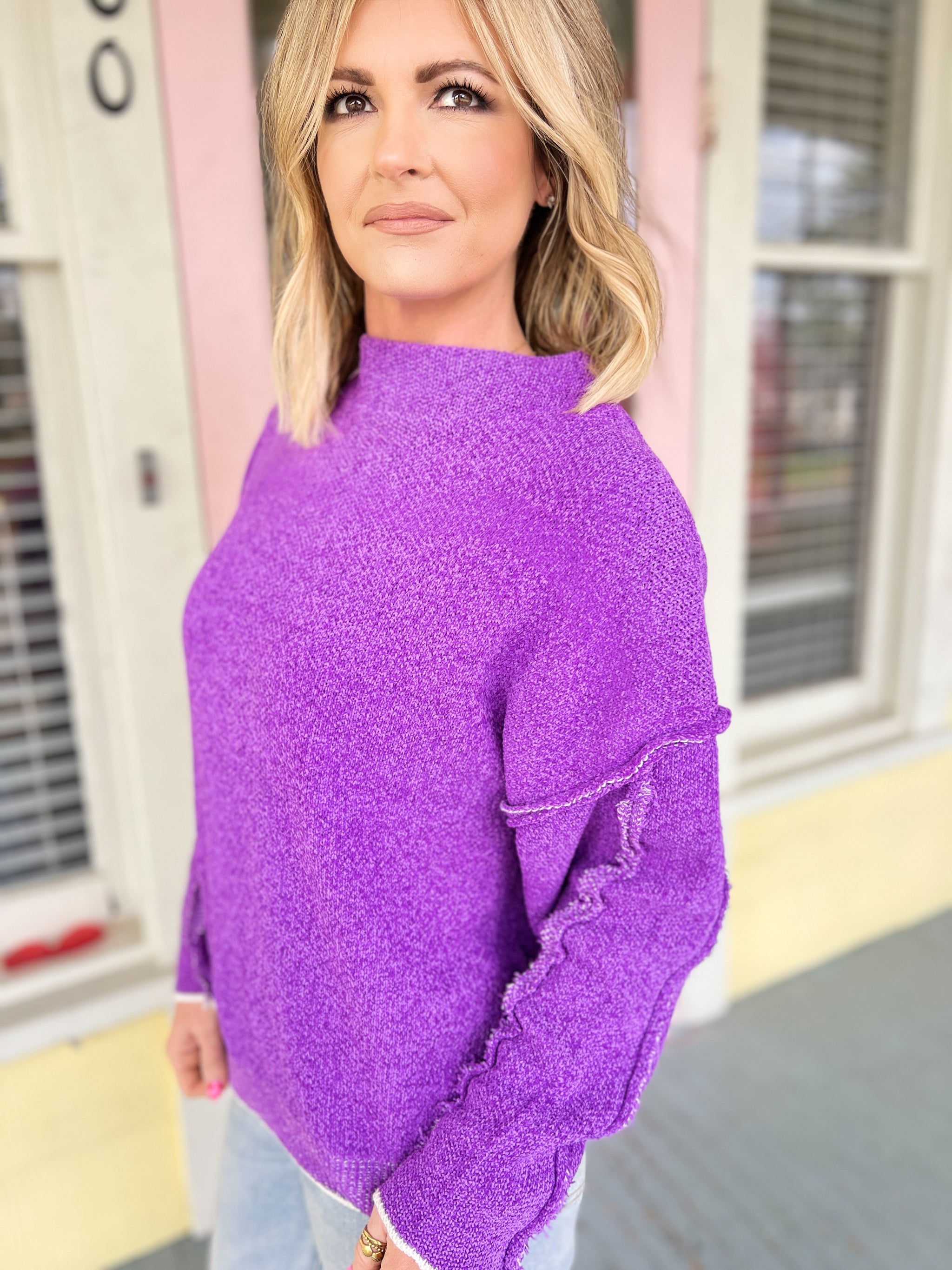 Crisp Breeze Mock Neck Sweater - Violet