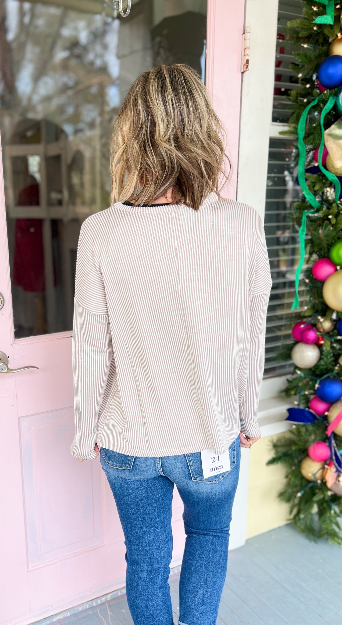 Days Gone By Ribbed Stripped Top - Ash Mocha