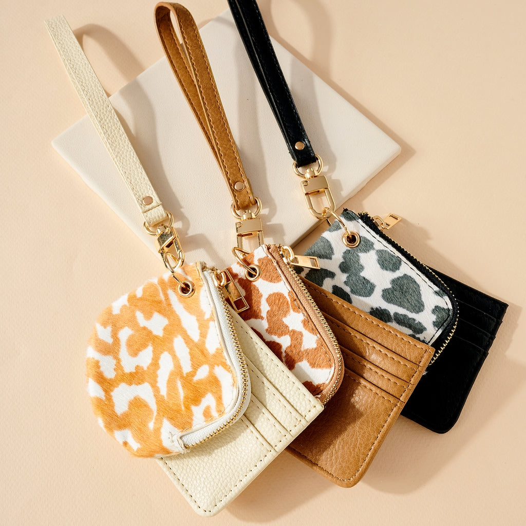 Animal Print Calf Hair Coin & Card Pocket & Key Chain