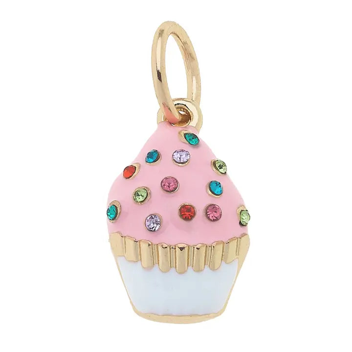 The Bejeweled Cupcake Charm in Light Pink features a cupcake design adorned with sparkling gems. This sweet and glamorous charm adds a sugary touch to any accessory.