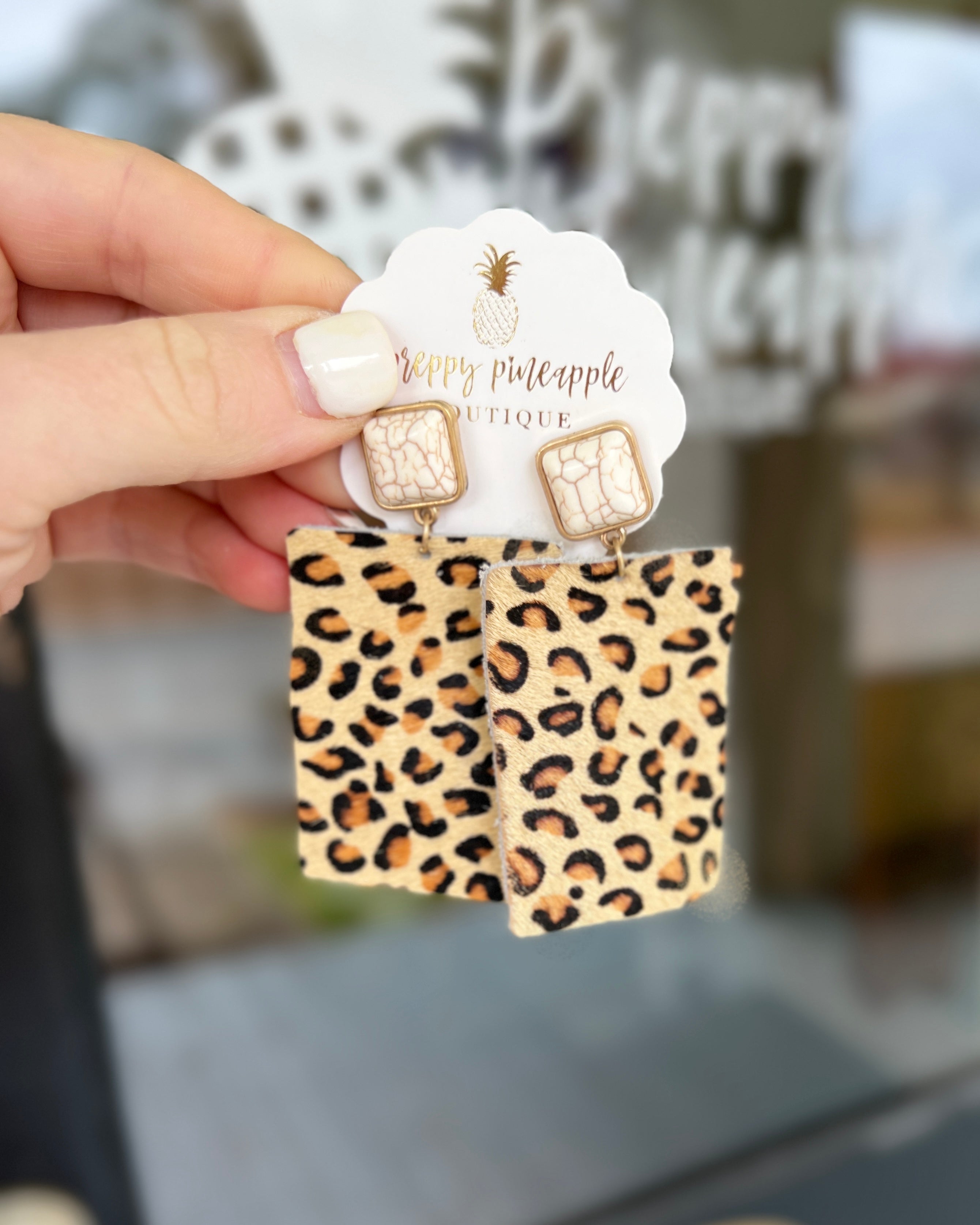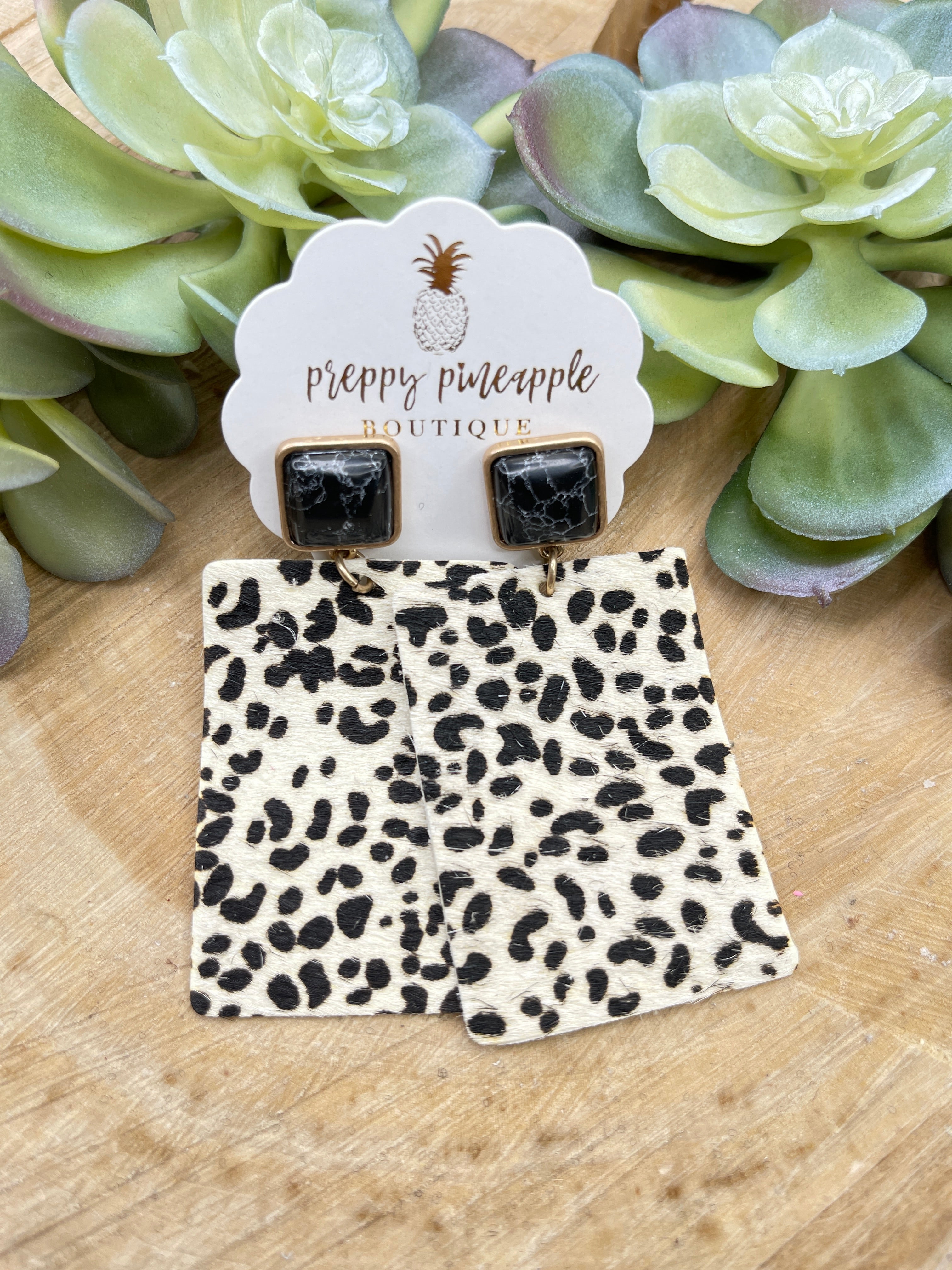 Animal Print Rectangle & Stone Earrings