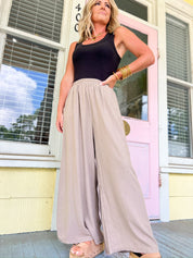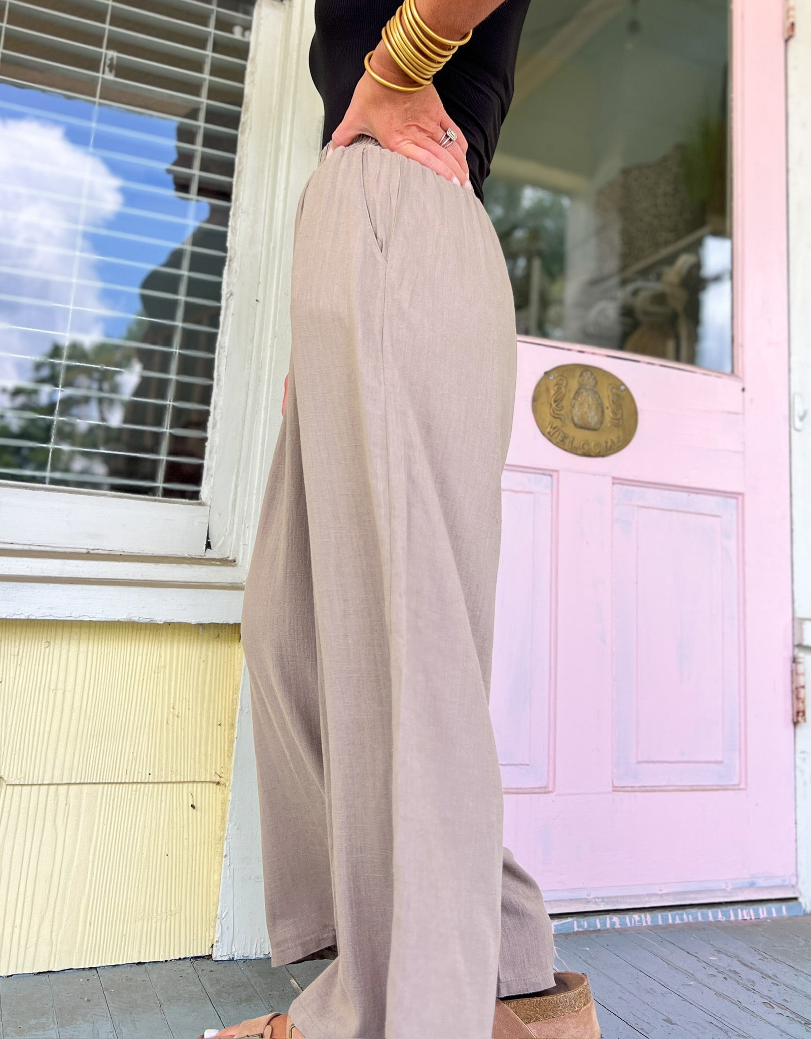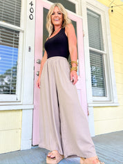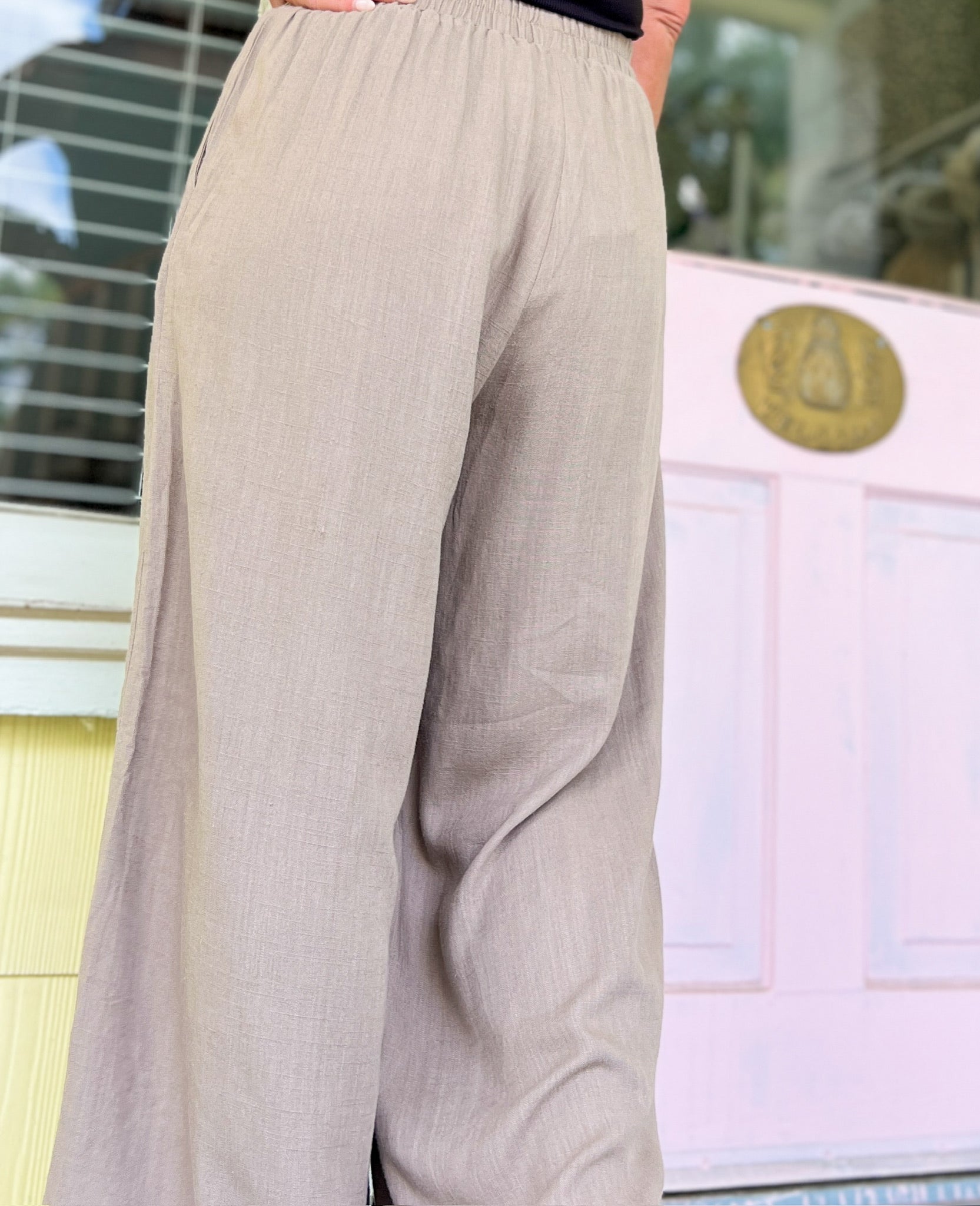 Experience comfort and style with the Going Steady Wide Leg Pants. Crafted from a breathable woven linen blend, these pants feature elegant pleats and a relaxed wide-leg fit that moves with you. The elastic waistband ensures a perfect, flexible fit all day long, making them ideal for both casual outings and relaxed workdays. Embrace effortless ease without sacrificing sophistication.