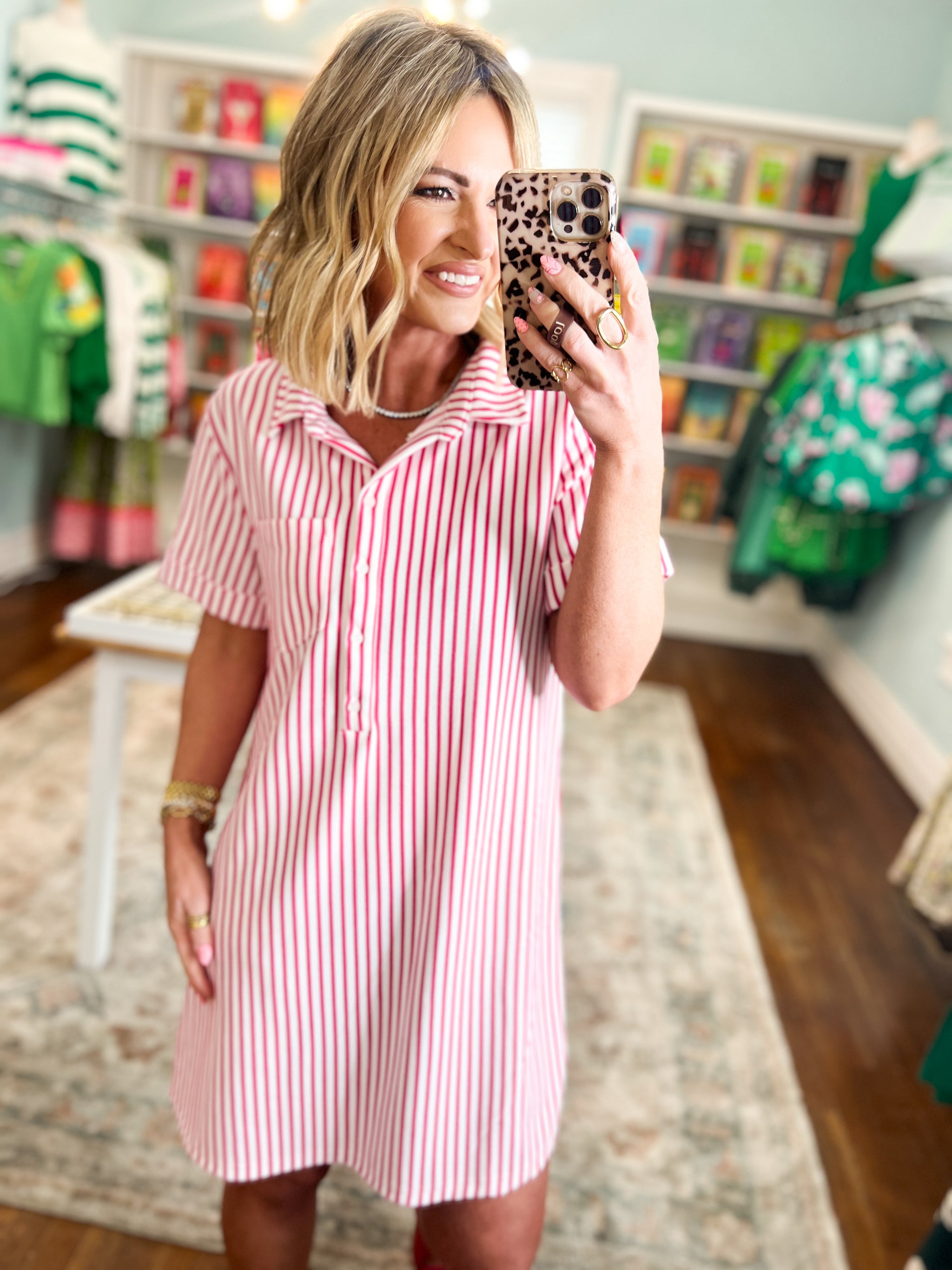Great Days Ahead Striped T-Shirt Dress - Hot Pink