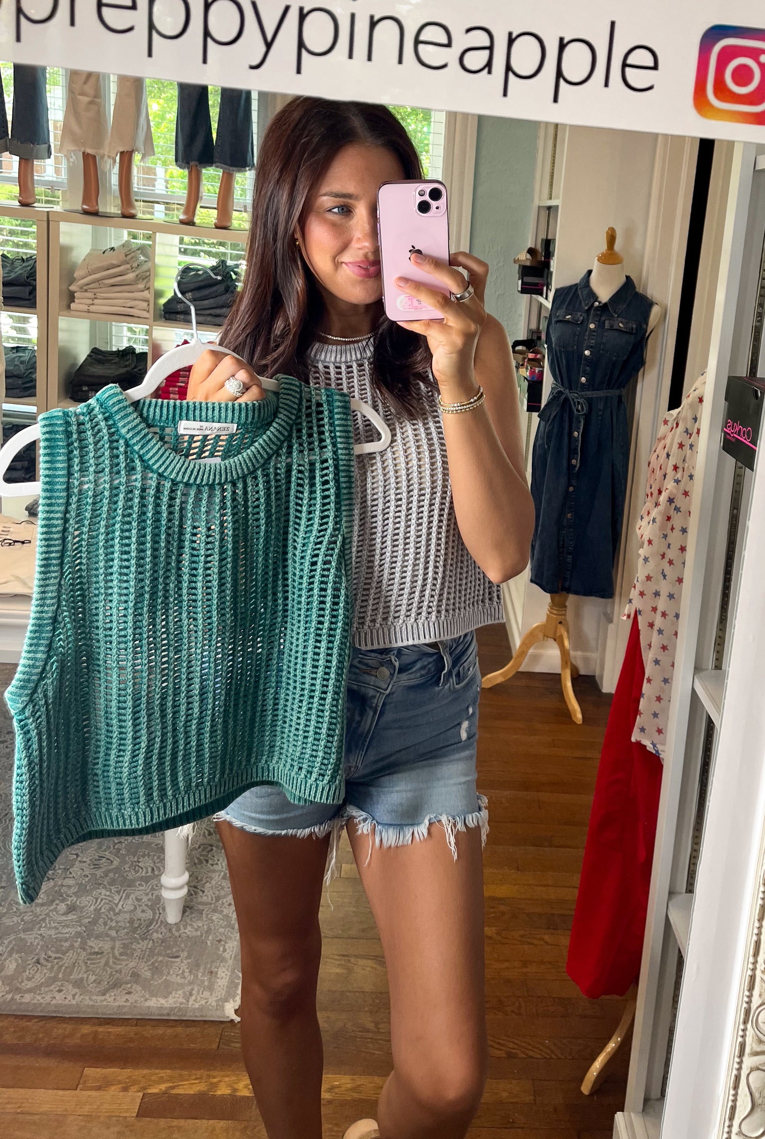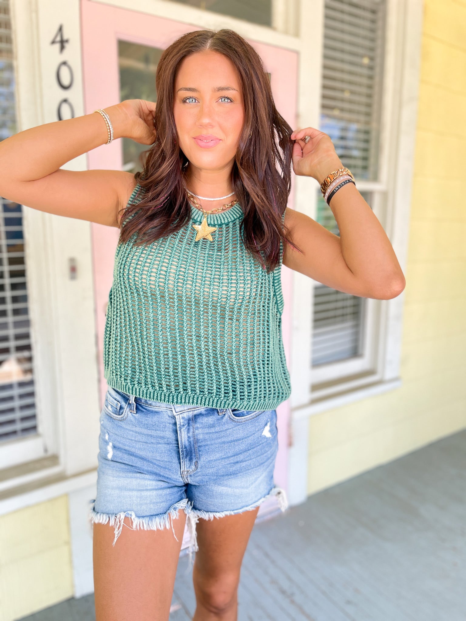 Longer Nights Fishnet Sweater Vest - Hunter Green