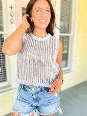 Dive into cooler evenings with our Longer Nights Fishnet Sweater Vest! This playful layering piece adds instant edge to any outfit. Wear it over a colorful bralette, pair with high-waisted jeans, or layer over a crisp button-down for that perfect preppy-meets-edgy vibe. Your summer wardrobe just got more interesting!