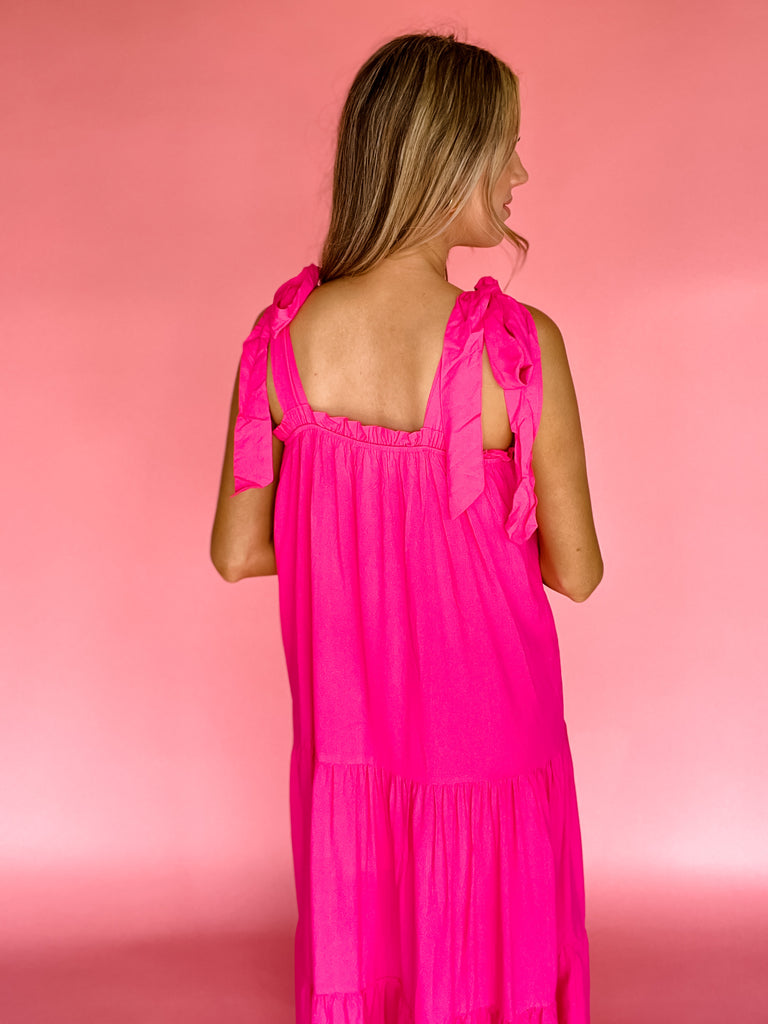 Solid maxi dress features tiered bodice with strap shoulder detail. Easy to wear, perfect with your denim jacket! Non sheer, woven.