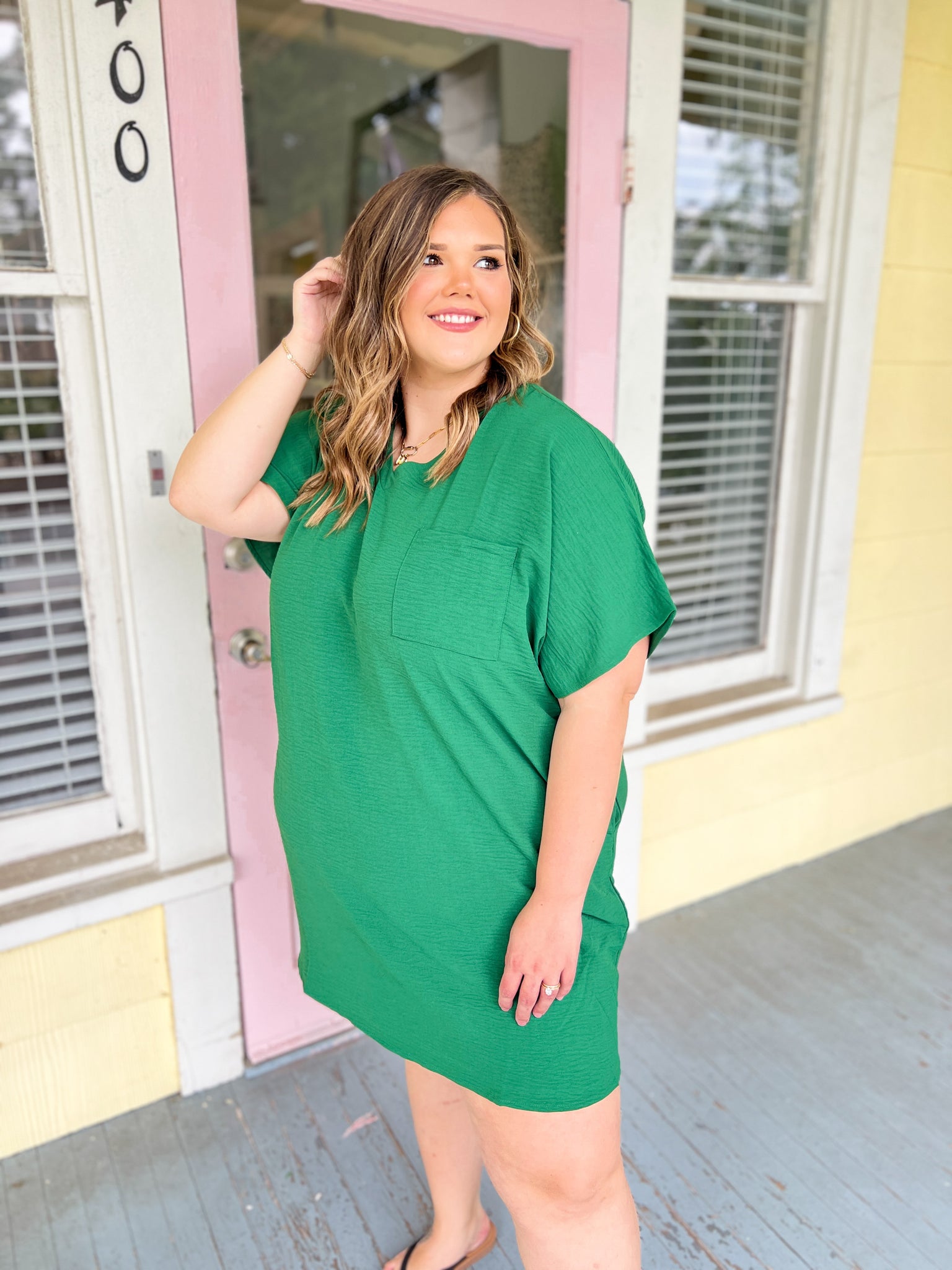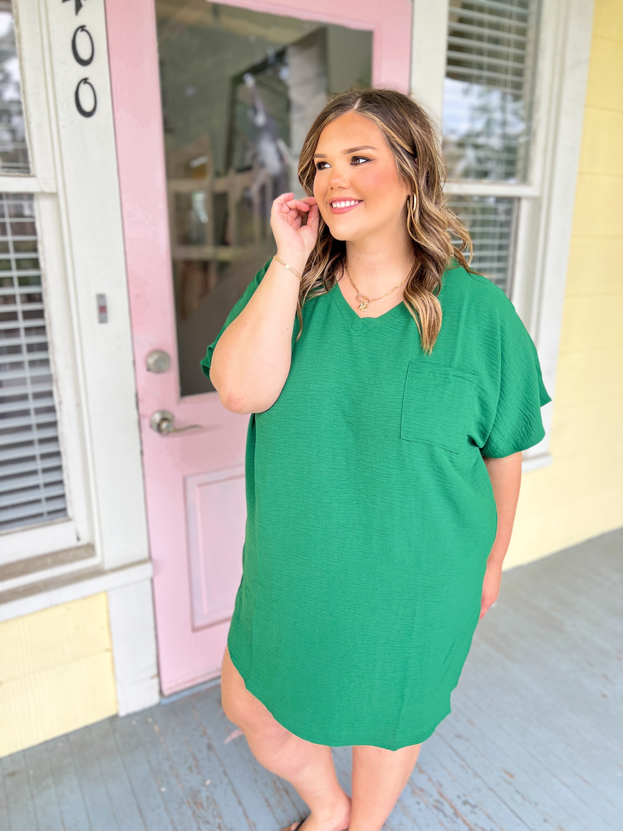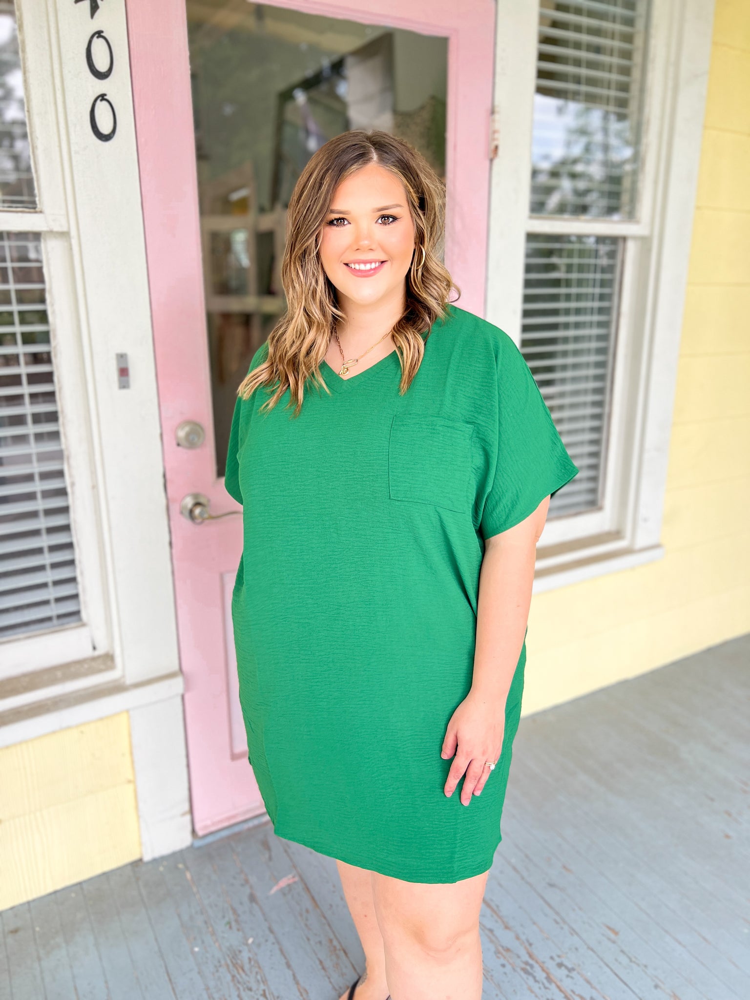 Feel the breeze in our There She Goes Woven Dress. With its woven airflow fabric and V-neck design, you'll stay cool and stylish all day. Plus, functional pockets add convenience to this must-have T-shirt dress. Say yes to comfort and fashion! *Each item is unique, expect variations in color and finishing.*