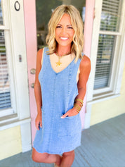 Get ready to turn heads in the When You See Me Overall Mini Dress! Made from stretchy denim for comfort and ease, this playful mini dress features adjustable straps for the perfect fit and a handy patch pocket to keep your essentials close. Its fun overall style and flirty length make it a must-have for sunny days and casual adventures.