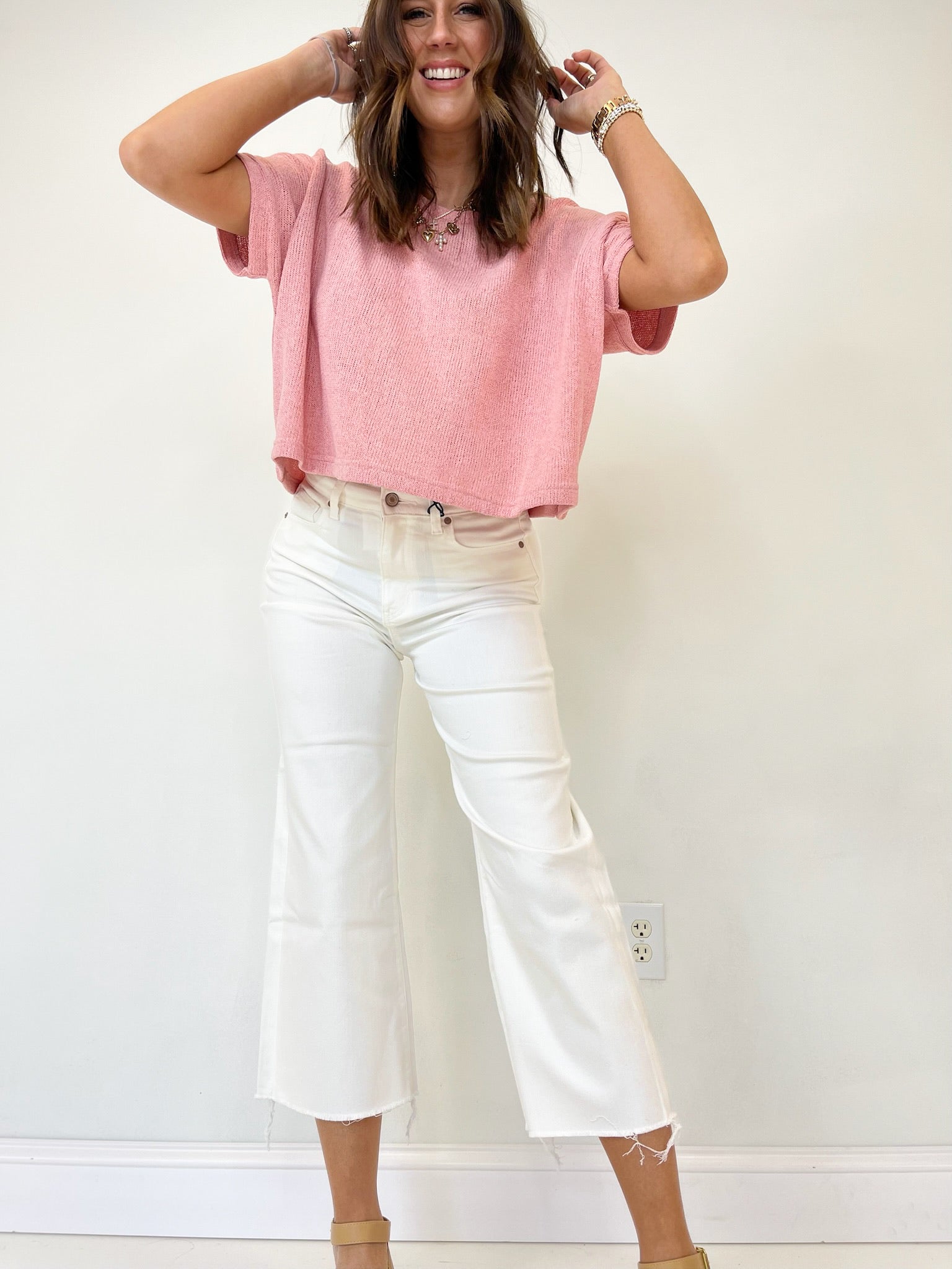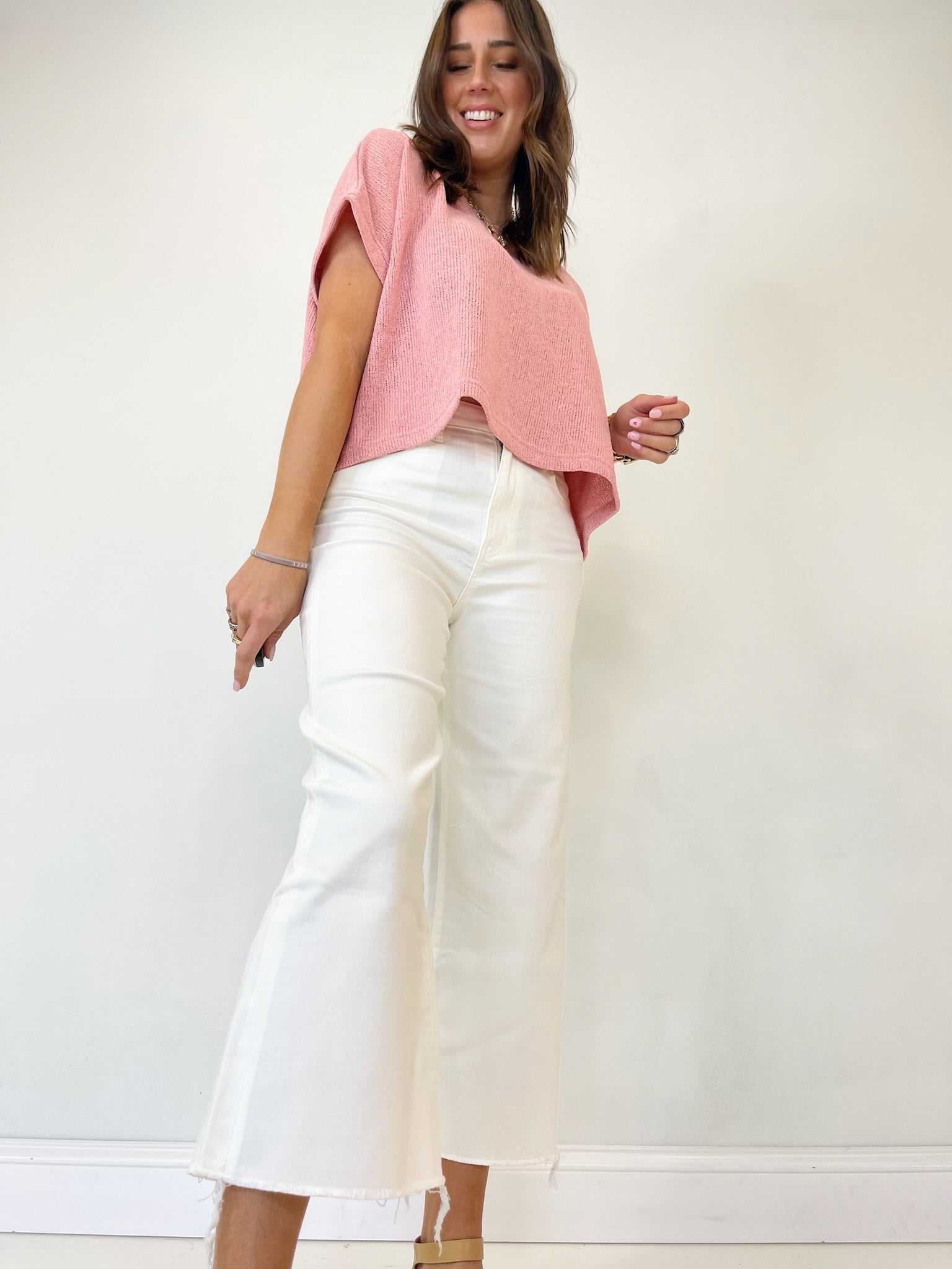 Get ready to Wish for This! These High Rise Wide Leg Cropped White Denim Pants are the perfect addition to your wardrobe. With a flattering fit and stylish design, these pants will make all your fashion dreams come true.